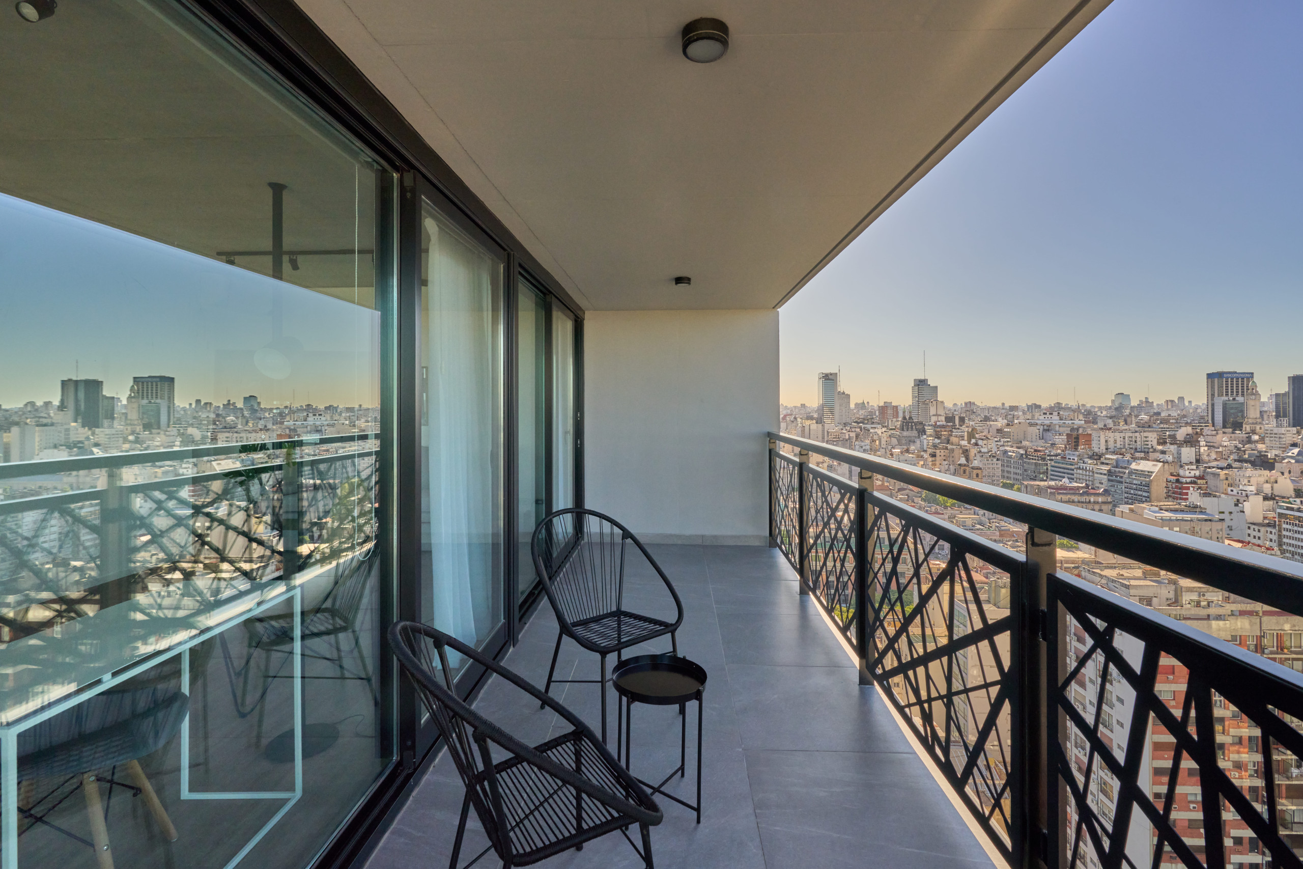 Cuando cae la tarde, el balcón se convierte en el lugar perfecto para relajarse, contemplando cómo las luces de la ciudad se reflejan en el río. Puerto Madero ofrece una combinación única de exclusividad y naturaleza, con sus elegantes bulevares, restaurantes de primer nivel y paseos junto al agua.