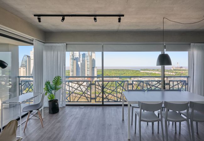 Este elegante apartamento en Puerto Madero ha sido diseñado para ofrecer una experiencia de confort y sofisticación. Su amplio living con cocina abierta invita a compartir momentos especiales, ya sea preparando una cena casera o simplemente disfrutando de una copa de vino con la ciudad iluminada de fondo.