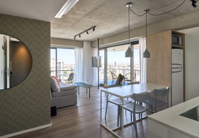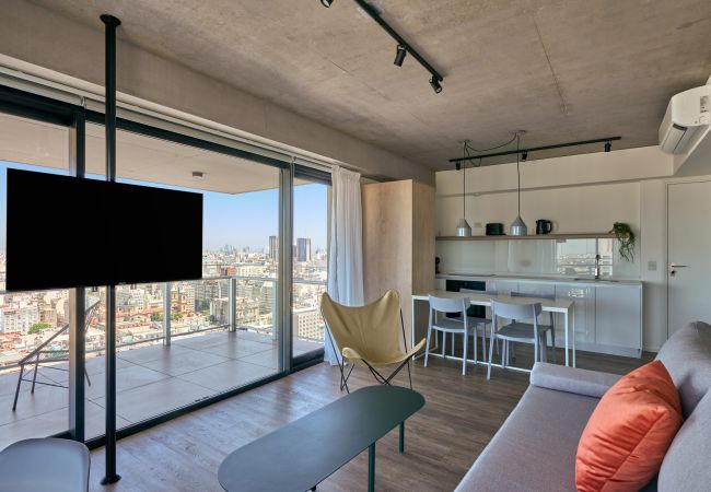 This elegant apartment in Puerto Madero has been designed to offer an experience of comfort and sophistication. Its spacious living room with an open kitchen invites you to share special moments, whether preparing a home-cooked dinner or simply enjoying a glass of wine with the illuminated city in the background.