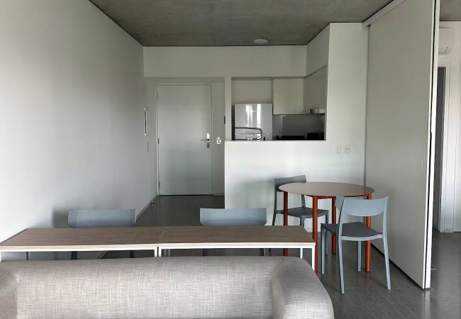A space that combines design, spaciousness and comfort in perfect harmony. Designed for those seeking a modern and balanced experience, within a building with a swimming pool, gym, coworking and terraces with views of the city and the river.