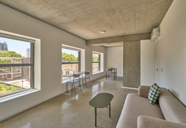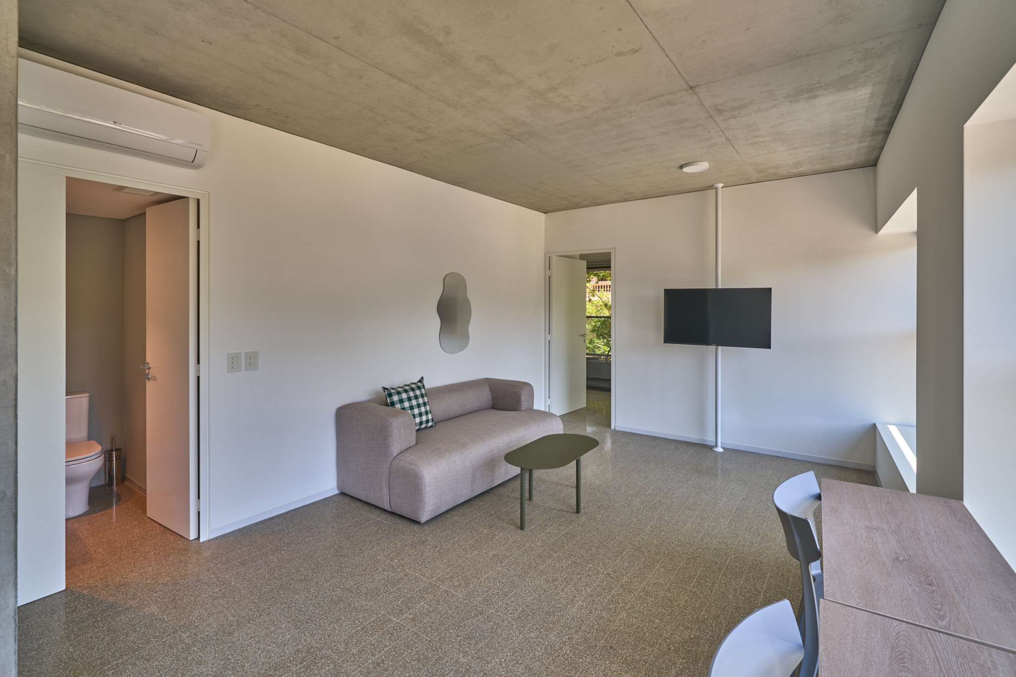 A space that combines design, spaciousness and comfort in perfect harmony. Designed for those seeking a modern and balanced experience, within a building with a swimming pool, gym, coworking and terraces with views of the city and the river.