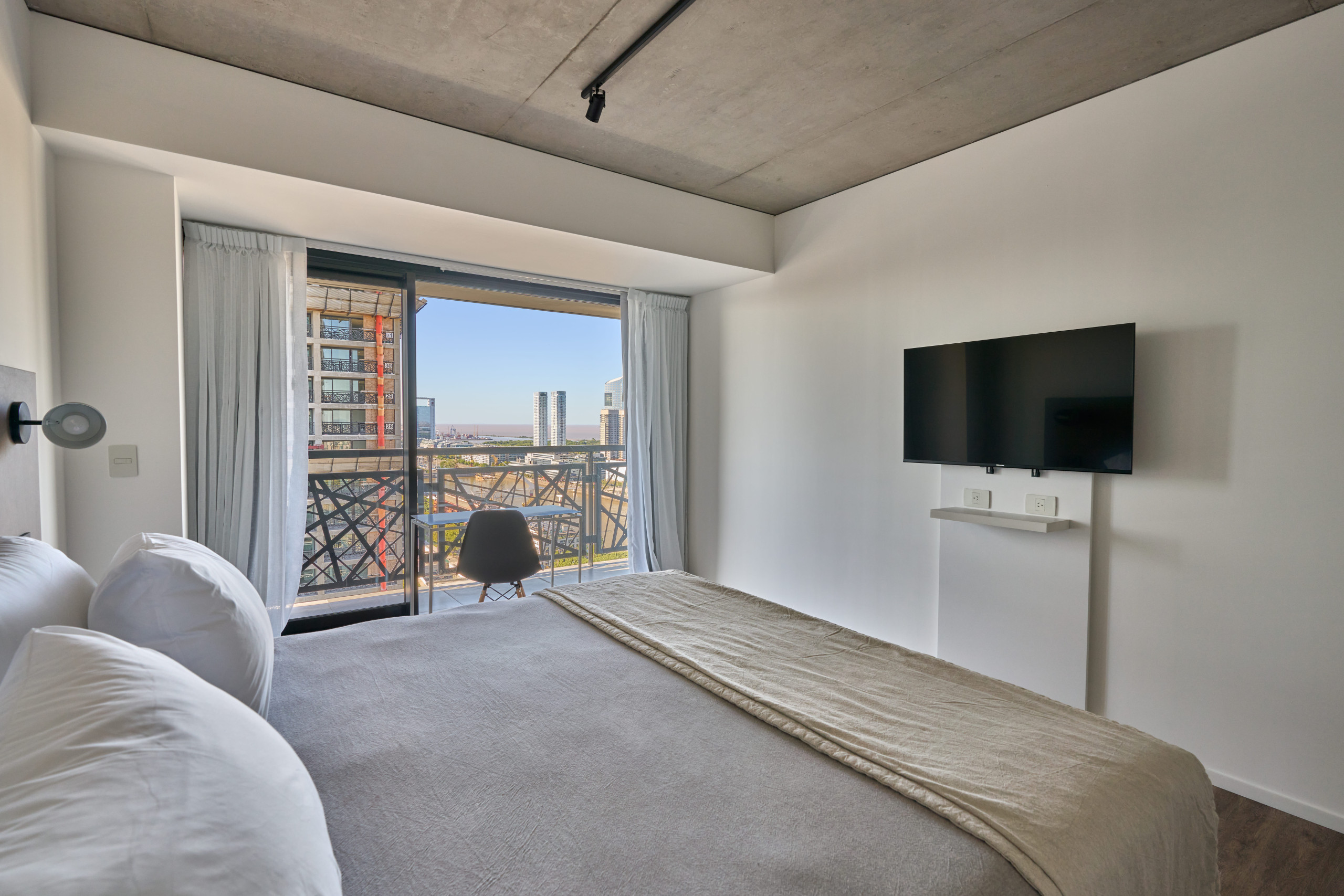 As evening falls, the balcony becomes the perfect place to relax, contemplating how the city lights are reflected in the river. Puerto Madero offers a unique combination of exclusivity and nature, with its elegant boulevards, top-tier restaurants and waterside walks.